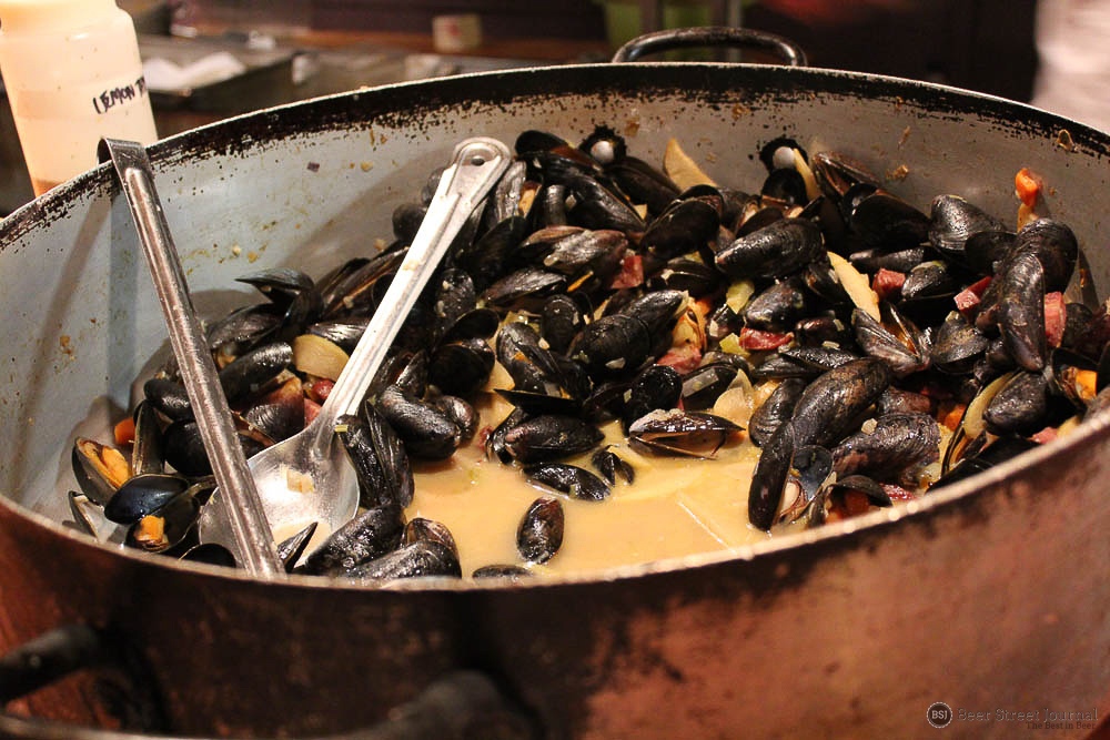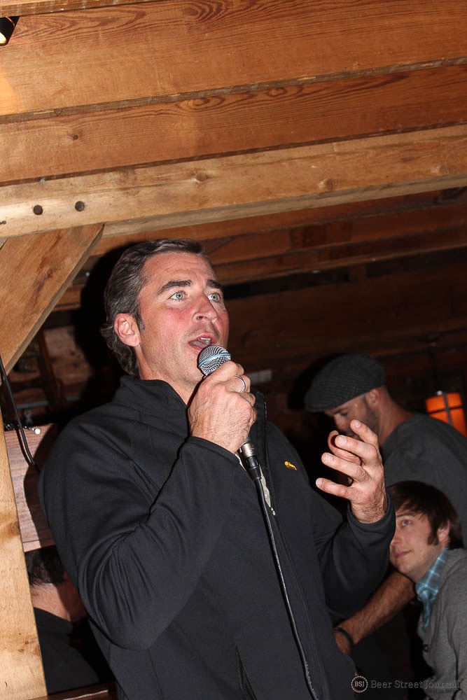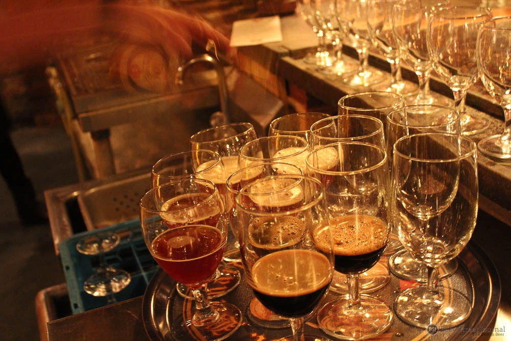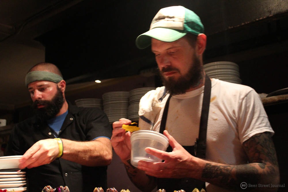 Earlier that day, Kiley and brew team spent many labor-intensive hours brewing the base beer at Monday Night’s original facility. The turbid mash was rested at five different temperatures then boiled for nearly four hours (losing 20% of the initial volume). After nightfall, the boiling hot wort was loaded into stainless steel totes and trucked to The Garage.